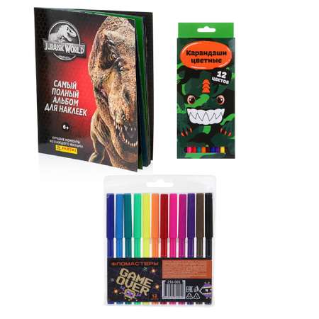 Набор: альбом Панини для наклеек Мир юрского периода + карандаши и фломастеры