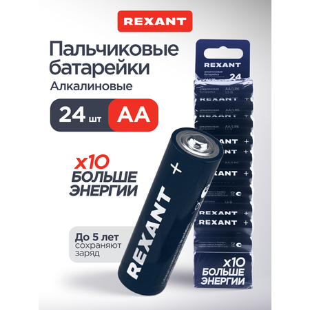 Алкалиновая батарейка REXANT AA/LR6 пальчиковая 1,5В 24 штуки