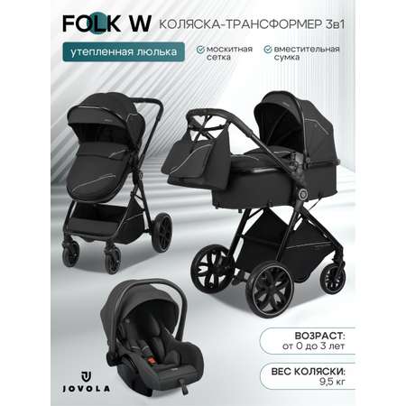 Практичная, функциональная коляска-трансформер 3 в 1 для новорожденных Jovola Folk W предназначена для детей с рождения до трех лет.
