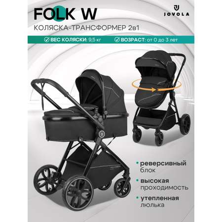Практичная, функциональная коляска-трансформер 2 в 1 для новорожденных Jovola Folk W предназначена для прогулок и перевозки детей с рождения до трех лет.