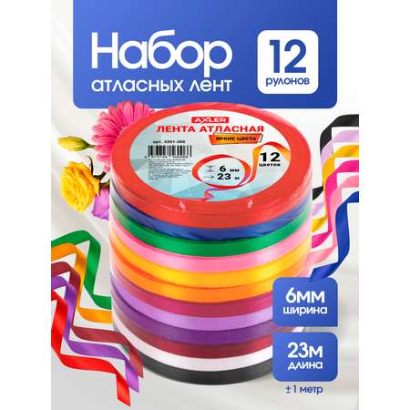 Ленты атласные AXLER тонкие упаковочные набор 12 шт