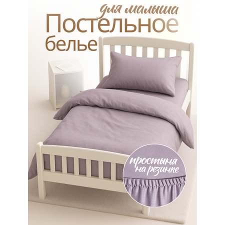 Постельное белье однотонное в кроватку для новорожденного с простыней на резинке, наволочка 40х60, ТМ Ночь Нежна Кварц