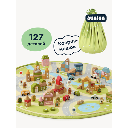 Деревянный игровой набор с кубиками и ковриком, Город кубиков в Junion, 127 деталей