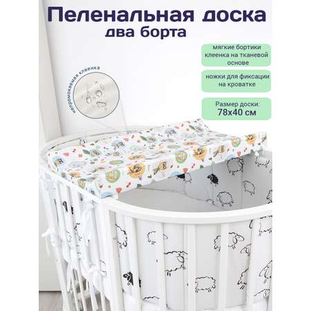 Пеленальная доска (размер: 78 х 40 см) для установки поперек детской кроватки. Доска для новорожденных предназначена для ежедневных гигиенических процедур или массажа младенца. Изделие изготовлено из деревянного основания - каркаса: многослойная ориентированно-стружечная плита - осп (osb), которая выдерживает кратковременные контакты с водой в процессе установки на ванну, и мягкого матрасика в верхней части. Матрас изготовлен из полиуретана и обшит непромокаемой медицинской клеенкой. Максимальная ширина кровати 78 см. Удобный пеленальник идеально подойдет для смены памперсов, переодевания младенца. Новая модификация изделия изготовлена с 4 ножками, которые устанавливаются внутри габаритов кроватки, что значительно сокращает возможность самопроизвольного перемещения доски и увеличивает надежность фиксации. Ножки можно закручивать в пеленальной доске в любом месте и на любом расстоянии с помощью саморезов, это сделано для того чтобы вы могли адаптировать ее для любого предмета в доме, будь то кровать или ванна, благодаря этому функции доска становиться - пеленальной доской для ванн, или пеленальной доской для кровати . Универсальную переносную доску также можно установить на любой другой поверхности, например, на родительской кровати, столике, обычном комодике или другой мебели. Бортики высотой 8 см предохраняют малыша от падения. Пеленальная доска - идеальное решение, позволяющее экономить место и заменить пеленальный комод простой переносной доской для установки в любом удобном месте. Возраст применения: 0+. Материал сертифицирован в соответствии со стандартами качества, гарантирует отсутствие токсичных веществ и полную безопасность для детской кожи. Производство Россия .