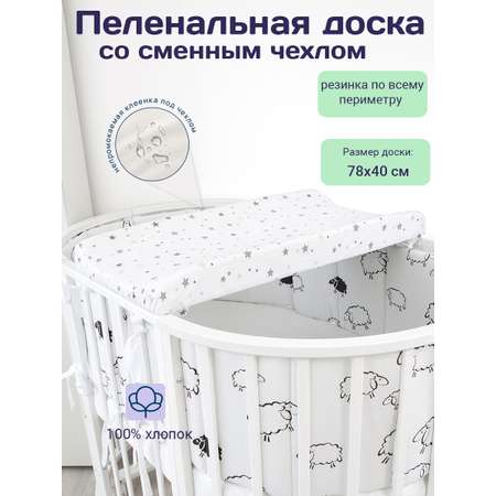 Пеленальная доска (размер: 78 х 40 см) два борта со съемным чехлом из бязи на резинке. Изделие изготовлено из деревянного основания - каркаса: многослойная ориентированно-стружечная плита - осп (osb), которая выдерживает кратковременные контакты с водой в процессе установки на ванну, и мягкого матрасика в верхней части. Матрас изготовлен из полиуретана и обшит непромокаемой медицинской клеенкой. Максимальная ширина кровати 78 см. Удобный пеленальник идеально подойдет для смены памперсов, переодевания младенца. Новая модификация изделия изготовлена с 4 ножками, которые устанавливаются внутри габаритов кроватки, что значительно сокращает возможность самопроизвольного перемещения доски и увеличивает надежность фиксации. Ножки можно закручивать в пеленальной доске в любом месте и на любом расстоянии с помощью саморезов, это сделано для того чтобы вы могли адаптировать ее для любого предмета в доме, будь то кровать или ванна, благодаря этому функции доска становиться - пеленальной доской для ванн, или пеленальной доской для кровати . Универсальную переносную доску также можно установить на любой другой поверхности, например, на родительской кровати, столике, обычном комодике или другой мебели. Бортики высотой 8 см предохраняют малыша от падения. Пеленальная доска - идеальное решение, позволяющее экономить место и заменить пеленальный комод простой переносной доской для установки в любом удобном месте. Возраст применения: 0+. В комплекте пеленка-чехол подходит для пеленальных досок размером: ширина 40-47 см, длинна 75-82 см., высота 7-11 см. Материал бязь.