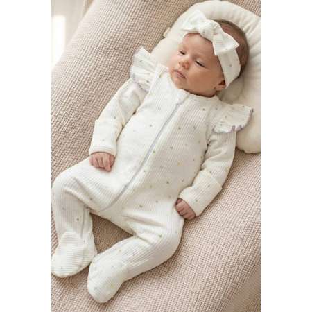 Слип с повязкой идеально подходит для ежедневного использования, а также станет отличным выбором на выписку из роддома или для крещения. Удобная застежка на молнию, которая проходит по всей длине, облегчает процесс смены подгузников даже в самых неожиданных ситуациях. Кроме того, слип с принтом добавляет особенностей в образ вашей малышки, а повязка с бантиком завершает комплект, придавая ему стильный и уютный вид. Этот комбинезон в рубчик с закрытой ножкой особенно удобен для детей, что делает его идеальным вариантом для активного времяпрепровождения. Все предметы, комбинезон и повязка, упакованы в зип пакет, что позволяет удобно хранить и транспортировать изделие.