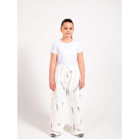 Штаны карго для девочки широкие прямые с затяжками. Брюки выполнены из дышащего материала. Состав из 2 х нитки делает ткань прочной и долговечной, а плотная фактура материала предоставляет дополнительную защиту и устойчивость к износу. Брюки оснащены накладными карманами, что удобно для хранения мелочей во время путешествий или игр на открытом воздухе. Высокая посадка гарантируют идеальное сочетание с любыми верхними частями гардероба, делая эти штаны универсальным выбором для повседневного ношения. Особенностью этих карго является их широкая и прямая форма, которая не только подчеркивает индивидуальный стиль, но и обеспечивает максимальную свободу движений. Завязки и резинка на талии позволяют настроить подгонку по размеру, обеспечивая идеальный силуэт и комфорт. Рисунок на брюках добавляет уникальность. Эти штаны карго – отличный выбор для девочек, которые любят активный образ жизни и ценят качество и стиль в одежде.