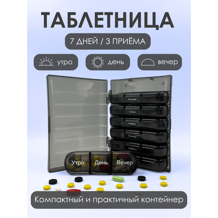 Таблетница на неделю AXLER 3 приема бокс для лекарств контейнер для таблеток кейс органайзер для витаминов