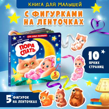 Как мягко и непринуждённо подготовить малыша ко сну и сделать вечернее время ещё волшебнее и уютнее? Мы знаем ответ на этот вопрос. Представляем вам чудесную книгу с фигурками на ленточках «Пора спать». Только посмотрите, какие милые персонажи помогут убаюкать малыша. Это белочка и бельчонок, кошка и котёнок, бобриха и бобрёнок, медведица и медвежонок и, конечно же, мама и малышка. Интерактивные элементы в книге – 5 персонажей на ленточках и картонные кармашки. Ребёнку предстоит отыскать свой кармашек для каждого малыша и заботливо уложить детёныша в свою кроватку. Подсказкой на каждом развороте будет изображение мамы малыша. А во время такой задачи, с помощью убаюкивающих картинок, как раз и получится настроиться на сладкий сон. В этом помогут и мелодичные стихотворения Марии Марченковой, каждое из которых будто делает окружающие звуки тише и окутывает нежностью и теплом. В книге царит невероятная спокойная атмосфера, а мягкие цвета картинок позволят глазкам расслабиться и отдохнуть. Вот почему такая книга и увлечёт ребёнка, и поможет сладко-сладко заснуть вместе с малышами. И здорово, что ребёнок сможет тактильно участвовать в историях, помогая малышу на каждом развороте. Так при прослушивании стихотворений будут одновременно задействованы слух, зрение и осязание. Такие интерактивные книжки идеально подходят для самых маленьких и станут отличным подарком на Новый год, День рождения, самый весёлый праздник. Каждый разворот книжки наполнен чудесными иллюстрациями и милыми персонажами на ленточках, которые привлекут внимание даже самых непоседливых. Подвижные элементы способствуют развитию моторики, а сами тактильные книжки стимулируют любопытство и вдохновляют малыша на первые исследования, что делает их идеальным вариантом для игры и обучения. Подарите своему ребёнку возможность погрузиться в мир приключений с помощью этой книжки-игрушки. Она станет отличным дополнением к коллекции любимых книжек для девочек и мальчиков, а также поможет развить воображение и креативность. Для малышей это настоящая находка, которая будет способствовать развитию сенсорных навыков. Не упустите возможность порадовать своего малыша развивающей книжкой-игрушкой, которая подарит множество часов увлекательного вечернего времяпрепровождения. Книжка для малышей «Пора спать» – это целый мир открытий и волшебства для вашего ребёнка. Дарите лучшее! Дарите радость!