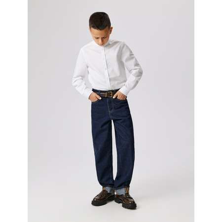 Детская белая рубашка для мальчика выполнена из смесовой ткани, которая подходит для длительного ношения. Рубашка с длинным рукавом и манжетами на пуговицах подходит для ношения в холодное время года. Модель прямого силуэта со стандартной линией плеча обещает классическую посадку по фигуре. Спереди расположена центральная застёжка на пуговицы. Белая рубашка без воротника для мальчика выглядит стильно и необычно. Округлая горловина комфортно ощущается в ношении. С левой стороны на уровне груди расположена вышивка в виде герба в тон основной ткани. Школьная рубашка для мальчика составит множество деловых образов для учебы, а также отлично подойдет для образа на Новый год в паре со стильными синими джинсами (20110440102). 20130280039 20130280039
