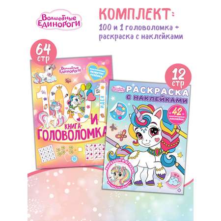 Комплект Волшебные единороги ИД Лев 100 и 1 головоломка + Раскраска с наклейками