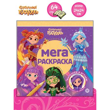 Раскраска с героями мультфильма Сказочный патруль в формате большого блокнота 24*24 см. Фигурки персонажей для вырезания на обороте раскраски.