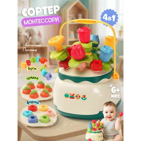 - Развивающий сортёр 4 в 1 «Цветочная полянка» — это полезная, яркая и безопасная игрушка для малышей, которая сочетает в себе обучение и весёлую игру.