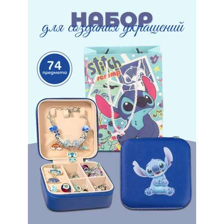 Набор для создания украшений, 74 предмета. Такой набор станет чудесным подарком для маленькой принцессы. Восхитительный комплект вдохновит юную модницу на творчество и позволит создавать стильные аксессуары для себя и своих подружек. В набор входит: 20 ярких бусин, 20 шармов, 20 подвесок, 6 подвесок со Стичем, 3 основы для браслета, 3 шнурка для ожерелий, удобная шкатулочка из непромокаемого материала на молнии и подарочный пакет. Собирать браслеты и ожерелья по собственному дизайну не только интересно и увлекательно, но и позволит провести время с пользой. Создание украшений развивает креативность и фантазию, способствует развитию мелкой моторики и усидчивости, идеально подходит для совместного творчества с родителями или друзьями, прекрасный способ создать уникальные подарки для близких. Благодаря красивой шкатулочке и подарочному пакету, набор является уже готовым подарком, о котором мечтает каждая девочка!