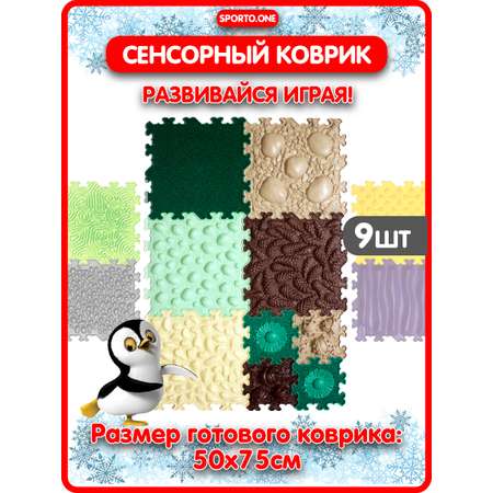 Коврик состоит из мягких модулей-пазлов, из которых легко собрать игровую зону, дорожку для баланса или лабиринт. Его поверхность выполнена с разнообразными рельефными элементами, создающими многоуровневую массажную текстуру. Такой рельеф мягко стимулирует стопы, способствует правильному формированию свода стопы и служит эффективной профилактикой плоскостопия. По функциональности коврик — полноценный аналог ортопедическим и массажным коврикам, но в отличие от них он яркий, мобильный и органично встроен в игровую среду.