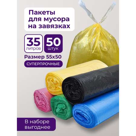 Пакеты PRO CLEANLY плотные мусорные пакеты - 20 мкм 35 л набор 50 шт цветные