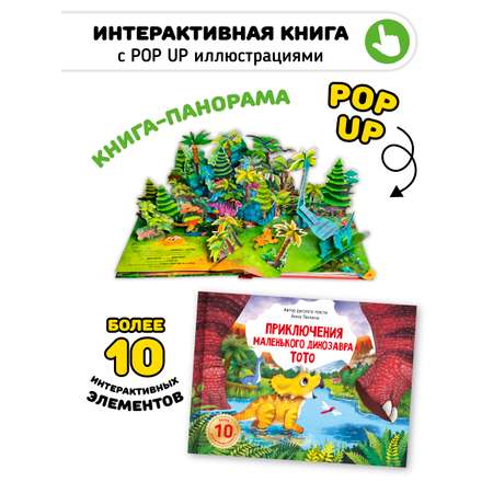 Цена на Детская книга с окошками и pop up Счастье внутри панорамка Приключения маленького динозавра ТоТо - 1576 ₽.