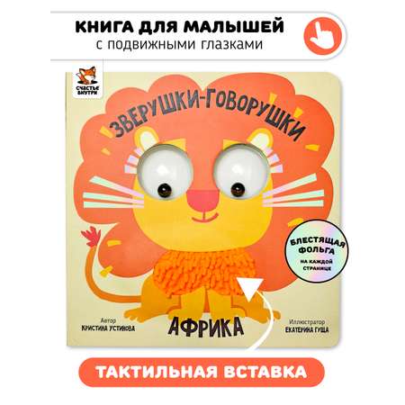 Цена на Тактильная развивающая книга игрушка Счастье внутри для малышей с подвижными глазками и фольгой Африка - 661 ₽.