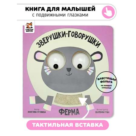 Тактильная развивающая книга игрушка Счастье внутри для малышей с подвижными глазками и фольгой Ферма