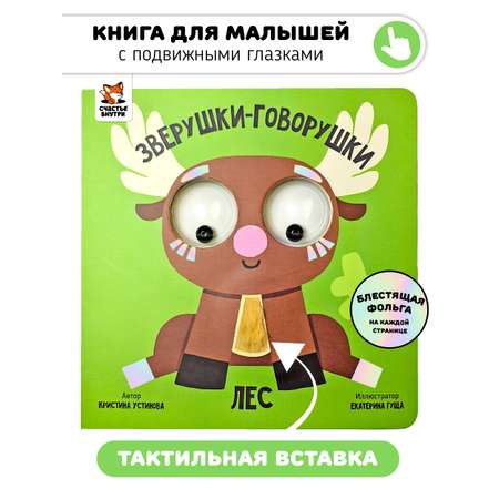 Тактильная развивающая книга игрушка Счастье внутри для малышей с подвижными глазками и фольгой Лес