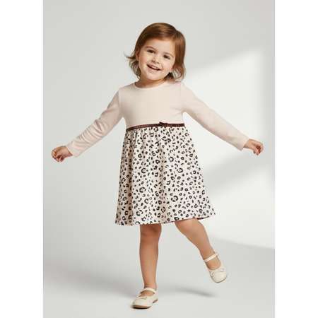 Платье с длинными рукавами для девочки с рисунком. Изготовлено из ткани интерлок 100% хлопок. Платье отрезное по линии талии. По центру спинки застежка.