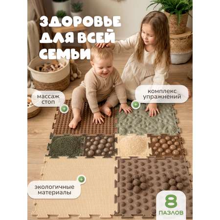 Здравствуйте, какая жесткость у ковриков? Здравствуйте. Коврик‑пазл Ортодон имеет комбинированную жёсткость: в одном наборе встречаются мягкие, средние и жёсткие элементы. Это сделано специально для развития стопы и профилактики плоскостопия.Добрый день. Подскадите, пожалуста, детали шишки и пушистик какого цвета идут? Зеленого или серого?