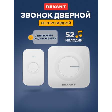 Беспроводной дверной звонок REXANT c цифровым кодированием 52 мелодии 150м IP56