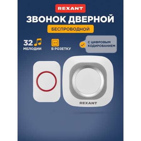 Цена на Беспроводной дверной звонок REXANT в розетку c цифровым кодированием мигающий 36 мелодий 150м IP44 - 1049 ₽.