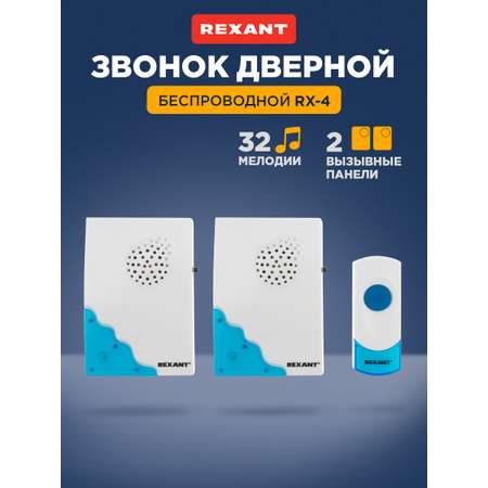 Беспроводной дверной звонок REXANT RX-5 с двумя вызывными панелями 32 мелодии 100м кнопка IP44