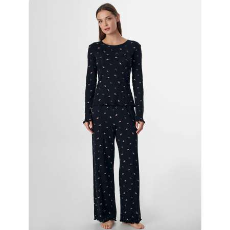 Хлопковая пижама для женщин со штанами и лонгсливом от белорусского бренда Mark Formelle. Костюм состоит из приталенного джемпера с длинным рукавом и прямых брюк, выполнена преимущественно из хлопка. Майка прямая, круглой горловиной и прямыми рукавами. Брюки свободные, с высокой посадкой и эластичной резинкой в поясе с завязками. Легкая сексуальная одежда для дома на уютную погоду. Качественный трикотаж будет долго оставаться таким же ярким, как и в первый день, даже после множества стирок. Романтический домашний комплект с брюками подойдет для беременных, в роддом кормящим и будущим мамам и на выписку, для девушек подростков, а также для взрослых женщин плюс сайз (plus size) больших размеров. Широкий размерный ряд позволяет подобрать размер для худых и полных, высоких и невысоких женщин. Марк Формэль - гарантия качества собственного производства в Беларуси
