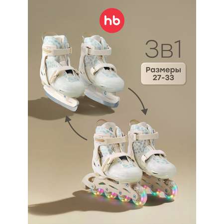 Ролики коньки раздвижные 3 в 1 — универсальный комплект для круглогодичного катания и развития ребёнка. Модель объединяет роликовые коньки для девочки, ролики квады и ледовые коньки для девочки, а раздвижная конструкция позволяет использовать один набор несколько сезонов подряд. Формат 3 в 1 делает комплект удобным решением для активных детей, которые хотят пробовать новые виды катания — от первых шагов на квадах до уверенного движения на льду. Такой набор отлично заменяет отдельные детские коньки для мальчика, ролики для мальчика или квады детские, предлагая больше возможностей в одном изделии.