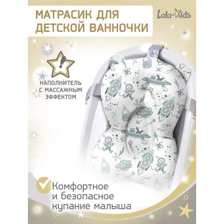 Матрасик для купания LaLa-Kids создан для комфортного и безопасного купания малышей с рождения! Мягкий матрасик для купания новорожденных в сочетании с теплой водичкой напомнит малышу то расслабленное и безопасное состояние, в котором он находился в мамином животике. Эксклюзивная новинка от LaLa-Kids – матрас для купания новорожденных с увеличенными гранулами пенополистирола, которые оказывают легкий массажный эффект.