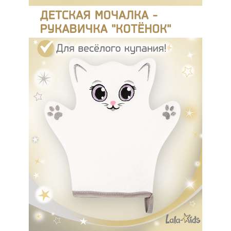 Мочалка варежка LaLa-Kids для купания детская Котенок