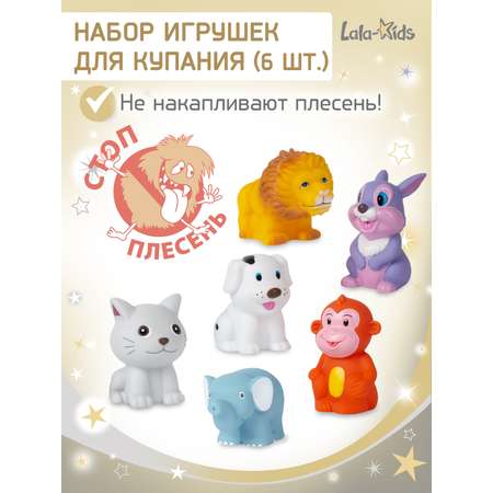 Мы позаботились о здоровье ваших детей и создали уникальный набор игрушек для купания! Благодаря отсутствию отверстия, наши игрушки для купания в ванной не накапливают опасную для здоровья черную плесень. Набор игрушек (6 штук) включает: котенок, щенок, зайчик, лев, слон и обезьянка.