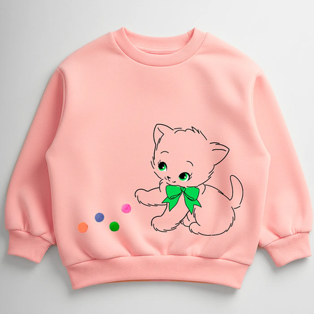 Кофта для девочки с начесом. Имеется аппликация кошечка.