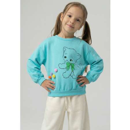 Кофта для девочки с начесом. Имеется аппликация кошечка.