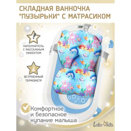 Детская ванночка LaLa-Kids складная с матрасиком и термометром в комплекте
