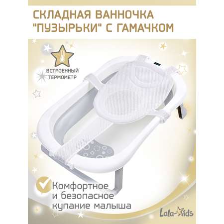 Складная ванночка для купания LaLa-Kids с термометром серая и гамачком