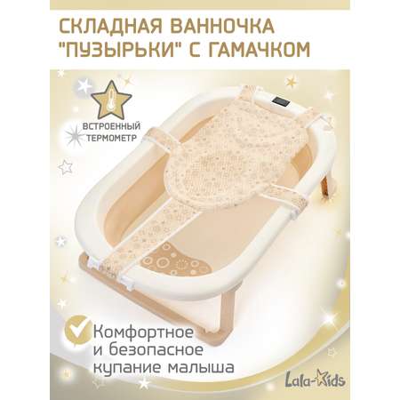 Ванночка LaLa-Kids Гамак бежевый + ковш с матрасиком, складная бежевый