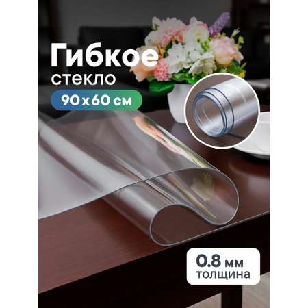 Гибкое стекло на стол 60х90 см VILINA толщина 0,8 мм / Жидкое стекло