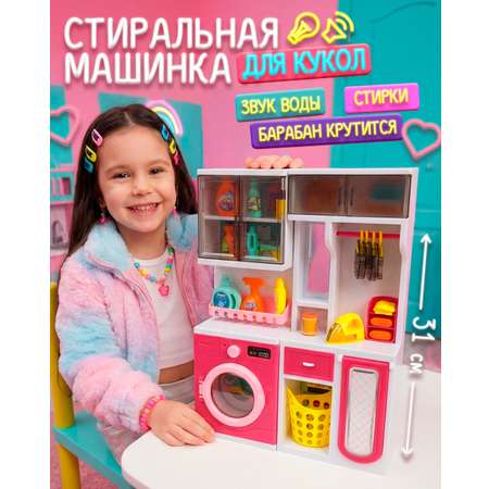 Туалет для кукол выглядит как настоящий: милые принадлежности для кукол, гладильная доска для кукол, реалистичная стиральная машина для кукол со световыми и звуковыми эффектами. Игрушки для куклы помогают ребенку разыгрывать повседневные ситуации, способствует развитию воображения, фантазии, речи и последовательного мышления через сюжетные роли.