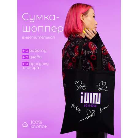 Сумка шоппер с принтом – стильный, удобный и универсальный аксессуар прямоугольной формы для фанатов кпоп групп BTS, StrayKids, Blackpink, Kuromi, Итзи, Твайс и сериала Токийский Гуль и других kpop фанатов.