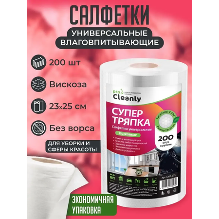 Салфетки для уборки PRO CLEANLY в рулоне, Супер Тряпка, Вискозные салфетки, 200 штук