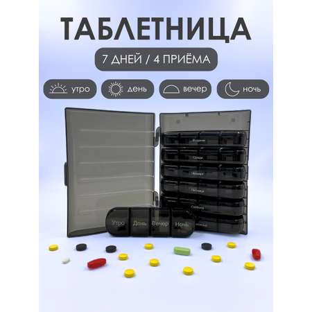 Таблетница на неделю AXLER 4 приема, бокс для лекарств контейнер для таблеток кейс органайзер для витаминов