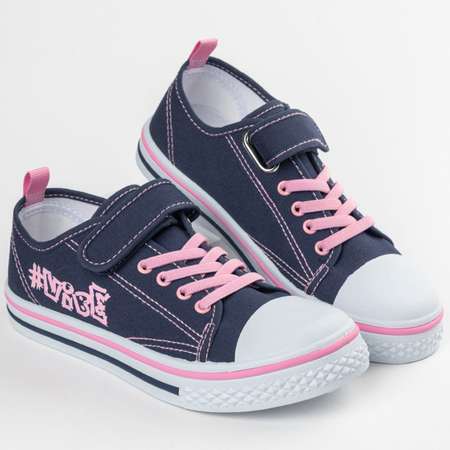 При выборе размера рекомендуем ориентироваться на размеры стелек. Длина стельки = длина стопы + 0,5 см. Синие низкие детские кеды для девочки TikkaGo. Верх детской обуви выполнен из дышащего текстиля с надписью. Подкладка и съемная стелька анатомической формы содержат 100% натурального хлопка и создают оптимальный микроклимат, позволяя ногам дышать. Мягкая нескользящая белая подошва, которая не чертит и не оставляет следов на полу, изготовлена из легкого и гибкого материала ПВХ. Тканевые спортивные полуботинки на лето не скользят по поверхностям при носке. С помощью одной застежки липучки и розовых эластичных шнурков резинок всесезонную обувь для подростка легко фиксировать и регулировать на любую полноту. Широкая колодка обеспечивает комфорт при длительной ходьбе и активных играх на улице. Подходят для повседневных прогулок в теплую весеннюю и летнюю погоду, а так же на сменку в школу, для физкультуры и занятий спортом. Рекомендованный температурный режим от +18 до +35 градусов. Сменная модель подойдет для детей школьного и подросткового возраста. Гарантия производителя составляет 30 дней с даты покупки.