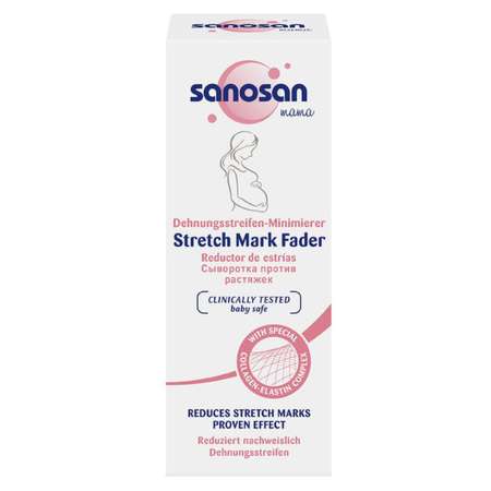 SANOSAN Сыворотка против растяжек с запатентованной формулой SynMatTM гарантирует снижение видимых проявлений растяжек на 72% уже после 2 месяцев использования*.