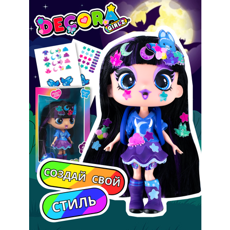 Кукла Изабелла Decora Girlz с разноцветными волосами в стильном наряде.Игрушка включает в себя набор плоских и объемных наклеек для кастомизации. Одежду, волосы и тело куклы можно украшать наклейками в наборе. Также в комплекте с куклой идет костюм, модная обувь, сумочка, гребень и подставка для куклы.Средняя высота куклы 13 см.