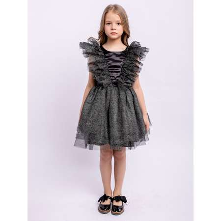Нарядное платье с пышной юбкой и рюшами из фатина, с декоративным бантом на поясе сзади. На спинке имеется поясок, чтобы дополнительно утянуть талию. Подкладка 100% хлопок.