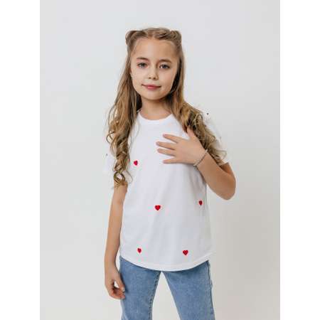 Белая нарядная праздничная футболка для девочки с милым принтом сердечки популярного современного бренда Seltex производителя модной одежды для детей и взрослых станет отличным выбором для каждого дня. Это детская майка с коротким рукавом идеально подходит для дома и отдыха. Она обеспечивает комфорт в течение всего дня, благодаря мягкому полотну высоким содержанием хлопка.