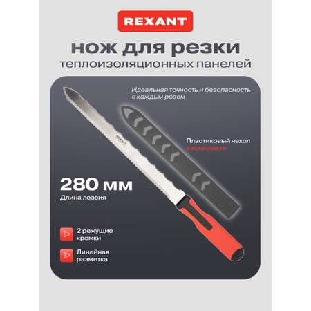 Нож REXANT предназначен для резки теплоизоляционных панелей, изготовленных из различных материалов, таких как: пенополистирол, минеральная вата, древесное волокно.